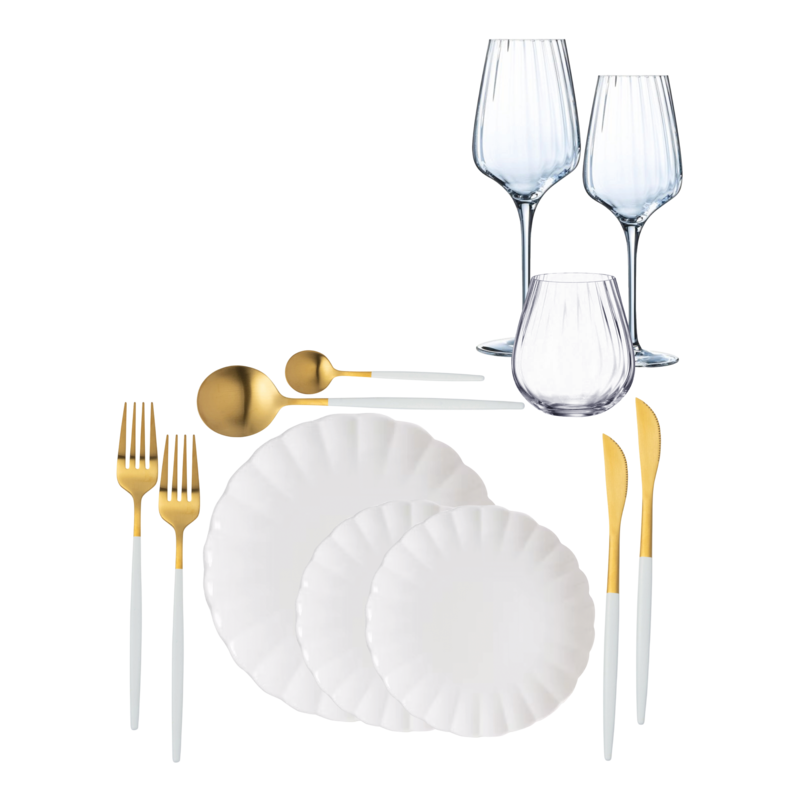 Un ensemble raffiné qui sublime vos repas de fête, mariages et réceptions, pour une table unique et sophistiquée.