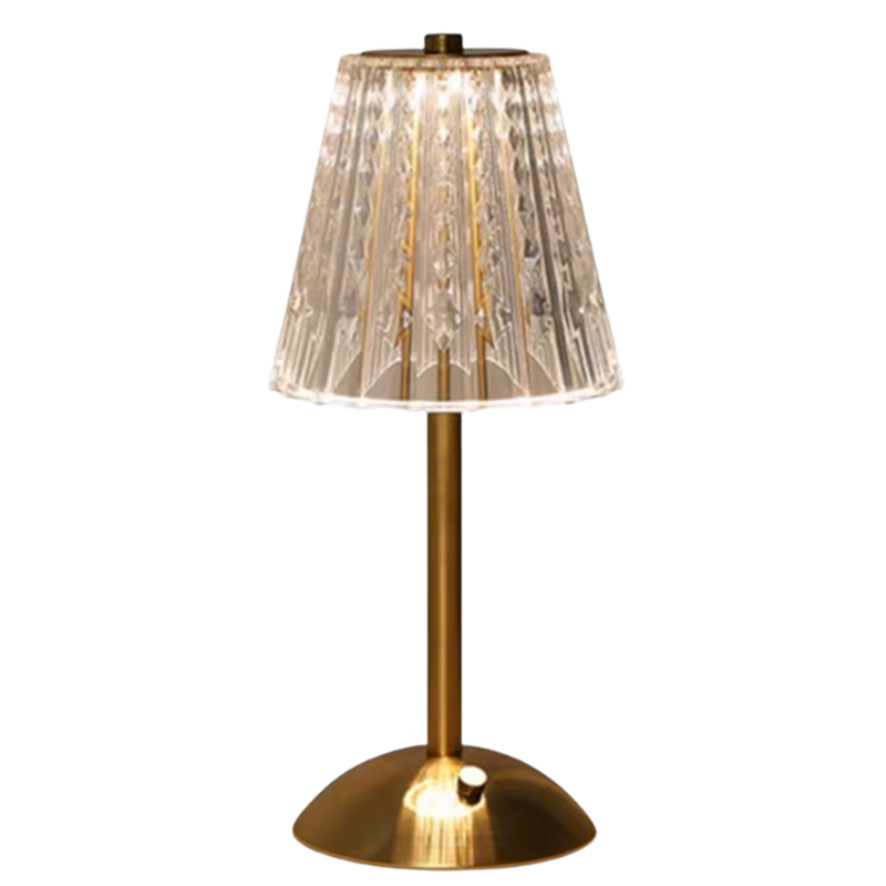 Apportez une touche de raffinement, d’élégance et de lumière cristalline à vos espaces avec la lampe de table Serena. Son pied en métal doré brossé associe modernité et chaleur, tandis que son abat-jour en acrylique finement travaillé imite l’éclat du cristal, diffusant une lumière douce et élégante.